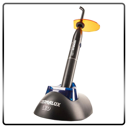 دستگاه CROMALUX LED multiwave نوعی لامپ دیود ساطع نور برای پلیمریزاسیون انواع مواد لایت کیور دندانپزشکی می باشد. این دستگاه شامل یک باطری شارژی، یک هندپیس با میله فیبر نوری به همراه شیلد